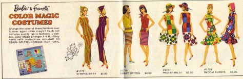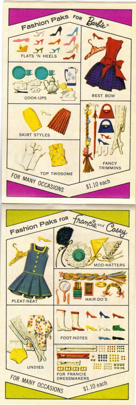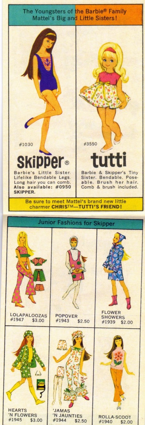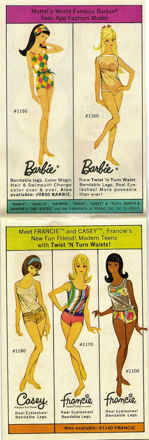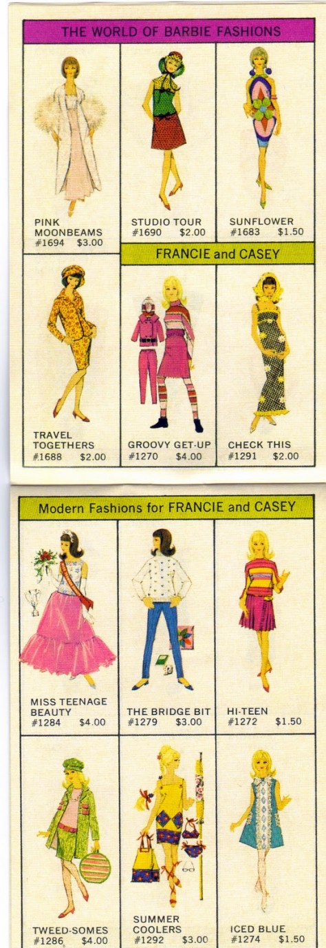 Yo naci con la Barbie, en 1959, y ver los catalogos era increible, nosotras eramos cuatro hermanas asi que cada una tenia una diferente, Barbie, Midge, Francie y mi hermana menor la Skipper, no llegaba a Perú todo lo de los catalogos pero soñabamos viendolos; habian unos vestidos hermosos, yo tenia el de novia y uno rojo de fiesta precioso. Para mala suerte en el 69,70 prohibieron las importaciones y no llegaron de nuevo sino a principios de los 80, donde pude recuperar parte de mi niñez comprandoselas a mis hijas.