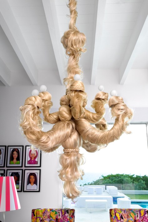 3. Me gustan muchas cosas de la casa, pero reconozco que otras me parecen muy excesivas! La lámpara de pelo me da un poco de grima y el tul de las sillas es criminal! Pero hay cosas increíbles! Las ilustraciones de barbie peinándose, el vestidor, el biombo de espejo del dormitorio… Si yo fuera rica…