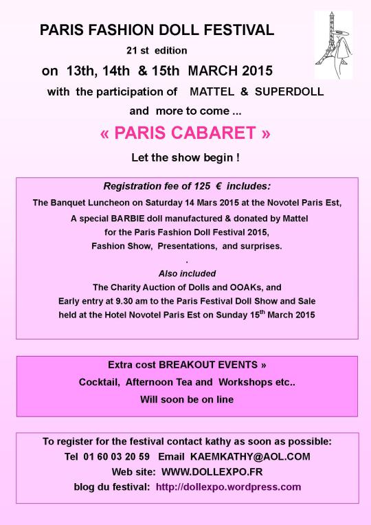El tema de este año será el Cabaret, se llevará a cabo durante el 13,14 y 15 de marzo de 2015 y, una vez más, esta 21 edición tendrá muñeca oficial de Mattel, ¿verdad que suena increíble? jeje.