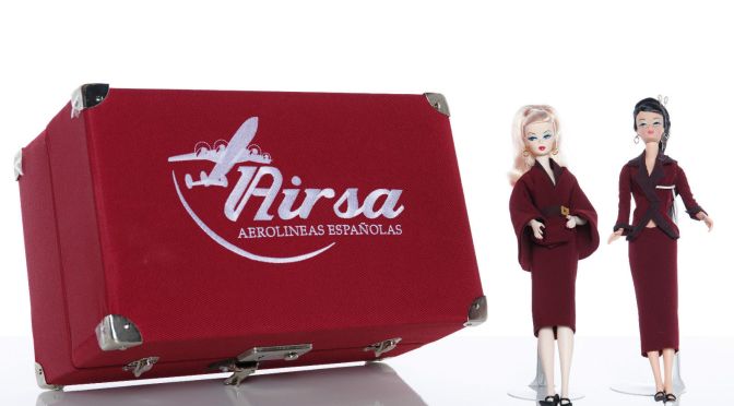 Los dos muñecas silkstone van vestidas con el uniforme de las famosas aerolíneas que aparecen en la serie, Airsa, que fue diseñado por Galerías Velvet. Van acompañadas de un bonito maletín de la compañía ficticia y de un libro firmado por los protagonistas de la serie: Paula Echevarría y Miguel Ángel Silvestre.