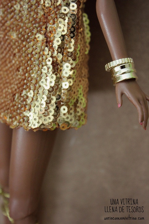 Antes de seguir viniéndome arriba, para que este post sea objetivo y realista, tengo que confesaros que uno de los pendientes vino roto (esta vez no solo no los lleva por mi miedo a ponérselos), su manicura nuevamente deja mucho que desear, el vestido podría estar mucho mejor (dejémoslo en que queda ‘raro’ puesto) y las sandalias son mortales para poner y más si no quieres que se te deshilache el cordón (¡¡jamás volveréis a verle los pies a esta Poppy si le pongo otra ropa!! No pienso quitarle las sandalias!!). ¡Ah! Y el micrófono ha venido con algunas partes en las que se ha desprendido el dorado (prácticamente no se nota).