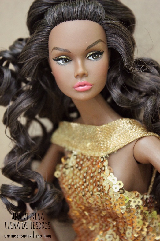 Como últimamente, no hago más que decir cosas negativas de Integrity Toys, también diré que la cara es dulce a más no poder, que las pestañas venían en su sitio (no siempre es así), el peinado es totalmente perfecto (¡¡hasta por detrás!! algo que ya quisiera Mattel) y trae ropa interior (¡dorada!).