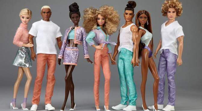 Tal y como explica el diseñador filipino, la colección está inspirada en la moda de los noventa y está compuesta, como veis, por tres muñecos Ken y cuatro muñecas Barbie en los que ha experimentado nuevas combinaciones de moldes y tonos de piel (¡no podría haber quedado mejor!). «Elegí una paleta de menta , coral y lavanda, con estallidos de color blanco«, apunta Nuera.