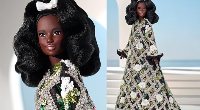 El diseñador británico Richard Quinn ha escogido a Barbie como musa para presentar una de sus prendas de la colección de otoño de 2021. Personalmente la veo como una diosa y, esta vez sí, se ve un vestido muy elaborado al que se le ha dedicado su tiempo de costura a mano (esas lentejuelas y pedreríasque juegan con el volumen…).