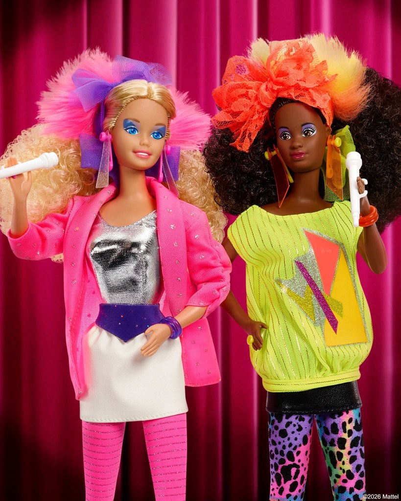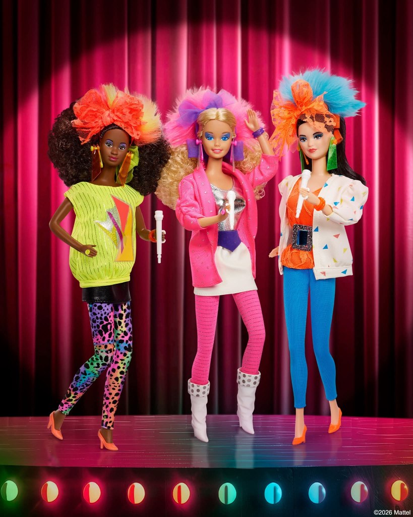 La banda de rock más famosa de este universo nuestro está de regreso para una gira de aniversario: ¡Barbie and The Rockers! Al igual que quien os escribe, estas muñecas cumplen cuarenta años y obviamente sus looks no podían ser más ochenteros.