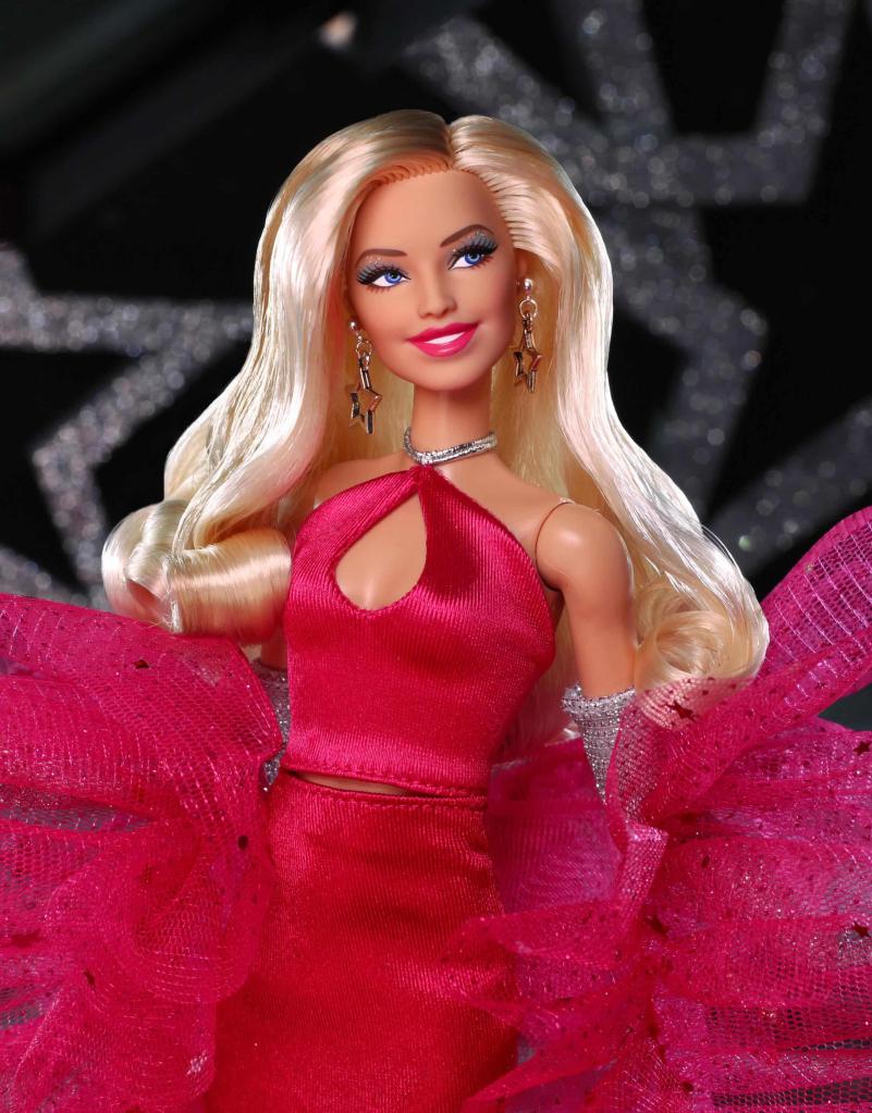 Este año el encargado de diseñar y producir la muñeca ha sido Ildefonso Martínez de Plastsmuk Dolls y no podía haberlo hecho mejor. Me ha confirmado que la inspiración es la Barbie Superstar de los años setenta dada la temática del evento (¡cómo no!) pero que, en sus propias palabras, «quería que fuera un poco más sassy» y decidió agregarle un cuello redondo.