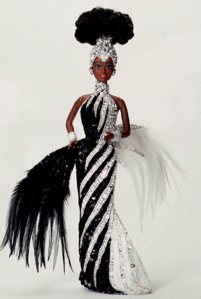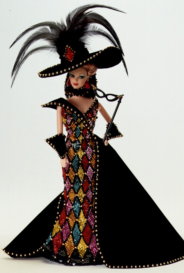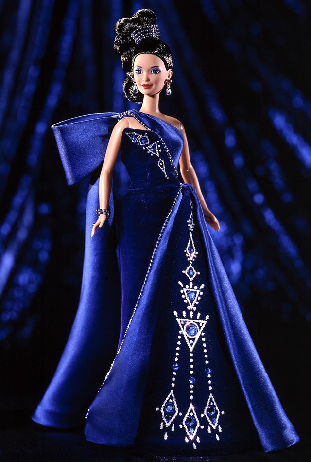 Con Barbie Collector tuvo ocasión de colaborar en 1998 creando una de las muñecas más espectaculares y románticas que se recuerdan. Nadie mejor que Barbie para lucir este vestido en tonos dorados y chocolate.