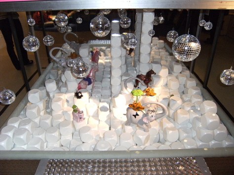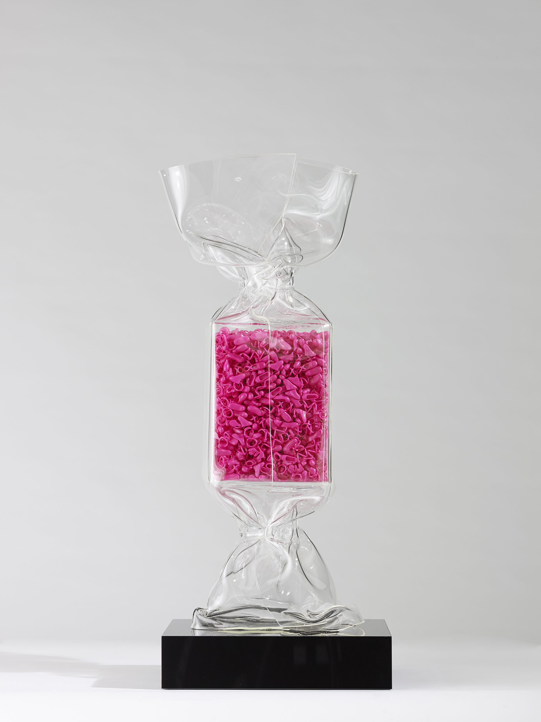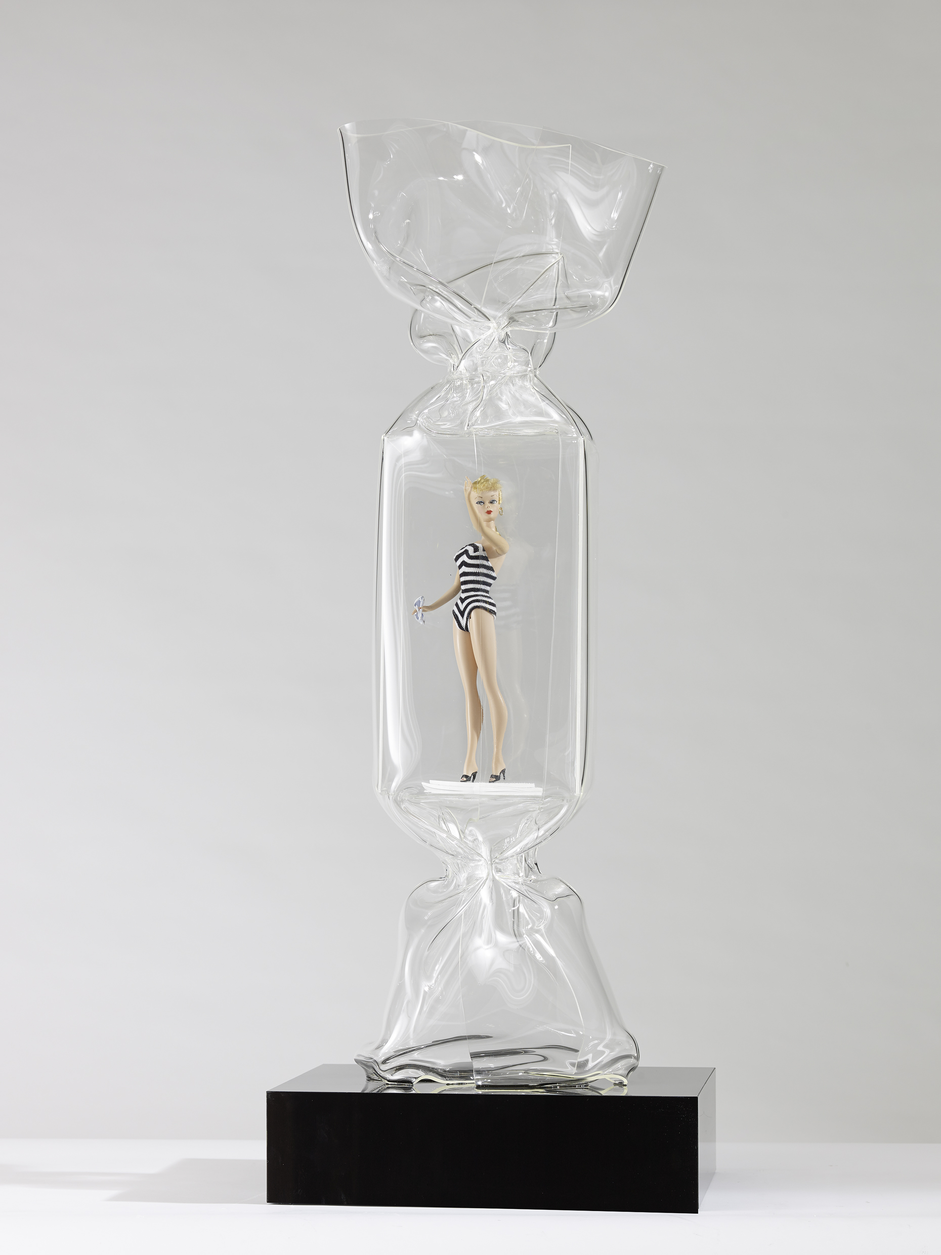 During the past week 11 to June 22, Laurence Jenkell, famous for her unique sweet sculptures, has been inspired by Barbie to create 8 unique pieces for a new collection. The unique pieces from transparent Plexiglas contain over 50,000 accessories, including iconic handbags and shoes from the endless closet of the famous doll. One candy even pays tribute to the first introduced Barbie in 1959 in her black and white swimsuit. The price for the unique pieces varies from around 12,000 € for the 80cm to 15,000 € for the 100 cm candy sculptures. Depending on the accessories used from the little style icon, the candy weighs between 3 and 5 kg.