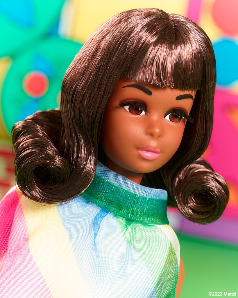 Según Mattel, hace 55 años nuestra amiga Fracie fue la primera muñeca en lucir piel negra (este dato me ha sorprendido bastante) allanando el camino a todas las muñecas Barbie con diferentes tonos de piel y a sus amigas, por supuesto. ¡Toda una revolución!, ¿no creéis? Y esta es la reproducción que lo demuestra.