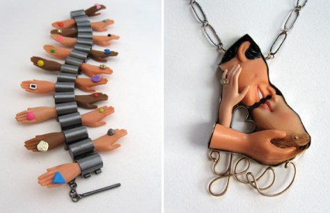 Using Barbie body parts, Margaux Lange creates necklaces, earrings, rings … some nicer than others but all strikingly original. Warning: Not suitable for sensitive people hehe. Hope you like it, all creations are put up for sale on its website.