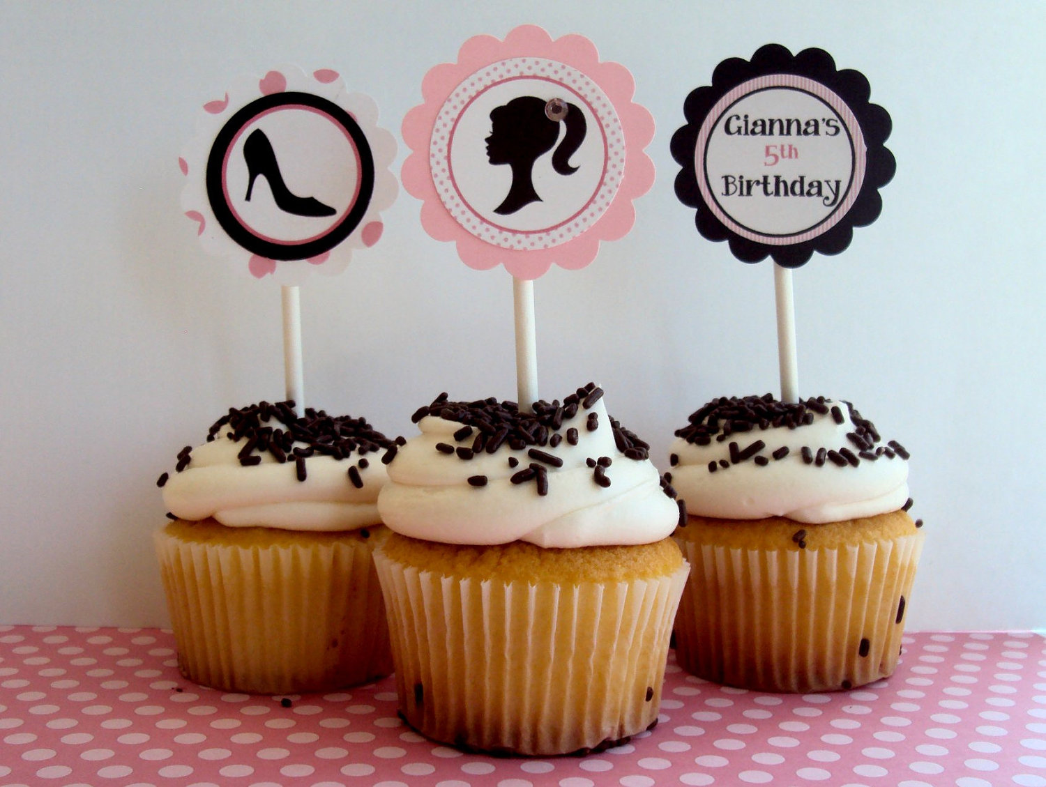 Después de Barbie, mi gran pasión es la repostería creativa. Creo que no hay nada que me relaje más que cocinar postres y cuando los saco del horno me siento realmente feliz, aunque a veces también algo frustrada si os soy sincera, aún me queda mucho por aprender. Antes de pegar el primer mordisco me gusta esperar a que lo hagan los demás, y no precisamente para ver si sin querer he envenenado la comida, no jejeje, si no para captar esa primera imagen que marca la diferencia entre ‘rico’ y ‘delicioso’ (ya, y ‘desastroso’ jeje). ¿Mi especialidad? Sin duda los cupcakes, he hecho de todo y quiero probar a hacer todo lo que me falta pero mis mejores experiencias han sido con los cupcakes. Por eso, y aprovechando que mi cumpleaños está cerca y seguramente me prepare mis propios cupcakes para celebrarlo en casa con la familia, he buscado en la Red varias ideas de toppers para cupcakes de Barbie.